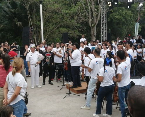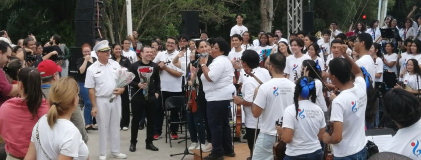Panamá, 23 de septiembre 2024. El Director de la Banda Repúblicana, Dimas Rodríguez, junto a otros profesionales de la música panameña, ofrecieron sus conocimientos como una herramienta de prevención e inserción a niños y adolescentes de distintos sectores de nuestro país, a través del programa “Red de Orquestas y Coros Infantiles y Juveniles” del Ministerio de Cultura.