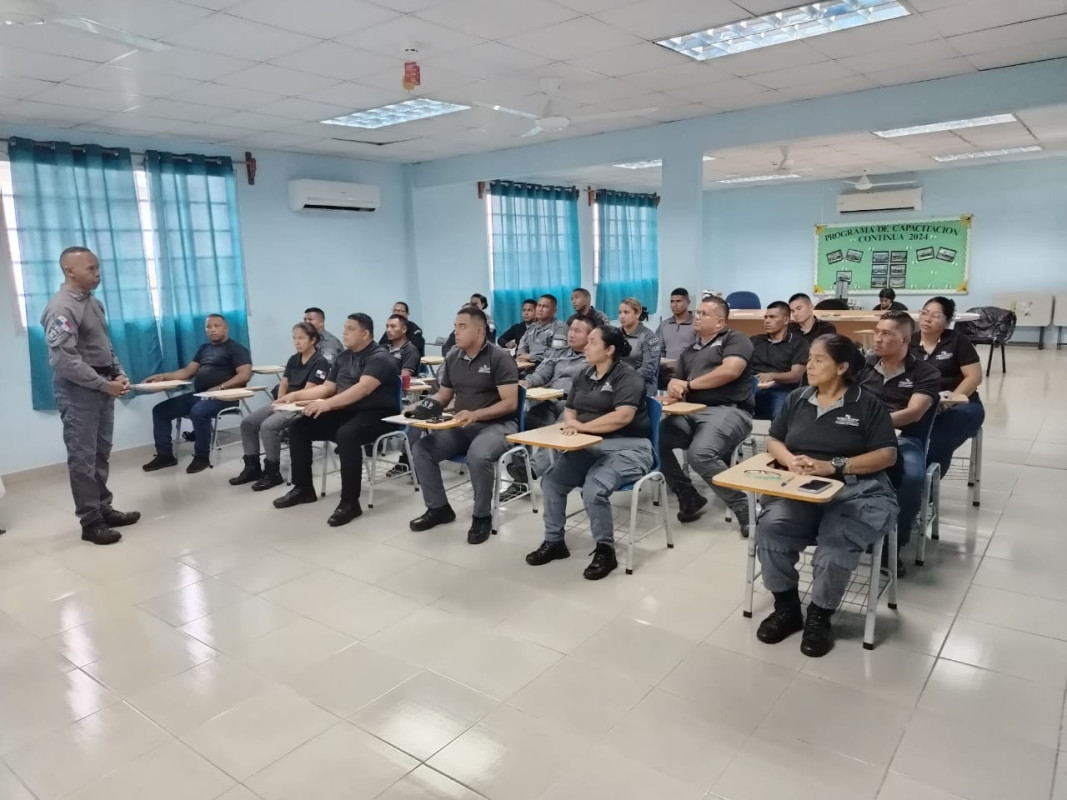 Coclé, 17 de febrero de 2025. – Con la finalidad de fortalecer la seguridad en los centros penitenciarios de adultos y adolescentes en conflicto con la Ley, la Academia de Formación Penitenciaria “Andrés Gutiérrez Bonilla” (AFP), realizó un curso de Primer Interviniente, donde participaron agentes penitenciarios de la Dirección General del Sistema Penitenciario (DGSP) y el Instituto de Estudios Interdisciplinarios (IEI).