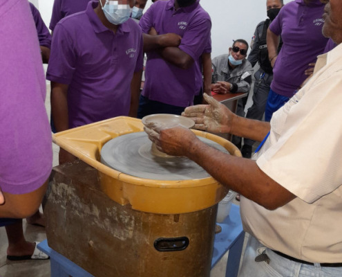 Panamá, 17 de febrero de 2023.- Dado el auge comercial que sostienen los artículos de cerámica en Provincias Centrales para el turismo interno como externo, 18 jóvenes del Centro de Custodia y Cumplimiento de Herrera (CCCH) iniciaron el taller en confección de piezas de cerámicas horneadas, fruto del convenio entre el Instituto de Estudios Interdisciplinarios (IEI) y el Instituto Nacional de Formación Profesional y Capacitación para el Desarrollo Humano (INADEH).