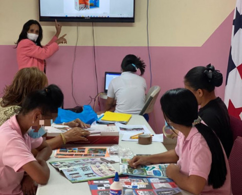 Panamá, 21 de marzo de 2023. – Con dos pisos decorados de colores vistosos y completamente amoblada, se creó la primera casa de muñecas elaborada con materiales reciclables por las jóvenes del Centro de Custodia y Cumplimiento Residencia Femenina (CCCRF) dentro del taller pedagógico de Gerencia Técnica y Estratégica para la Creación de Microempresas de Reciclaje, concienciando sobre la contaminación ambiental y las formas de revertirla.