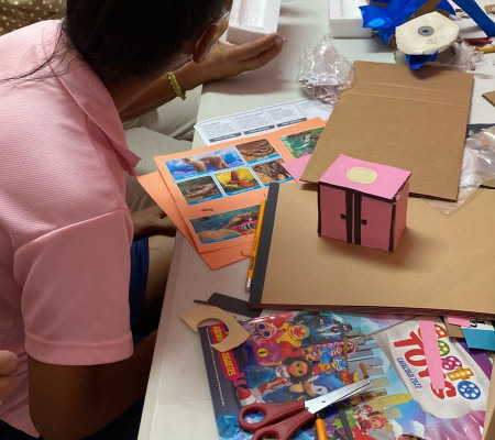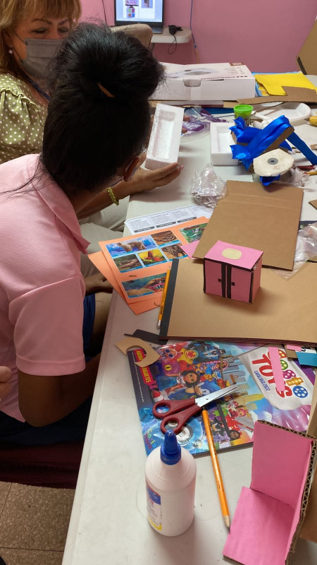 “En esta etapa de la capacitación se dio la oportunidad para que las jóvenes aplicaran sus inteligencias múltiples, creatividad e inventiva, mediante la elaboración de la casa y muebles, para lo cual se inspiraron en los personajes de las historietas infantiles “Barbie”, “Frozen”, “Moana” y “Princess”, utilizando la tecnología para buscar el modelo que deseaban materializar, pero sobre todo incentivando la práctica del reciclaje”, indicó Dilcia Esther Valdés, facilitadora del curso del Instituto de Estudios Interdisciplinarios (IEI).