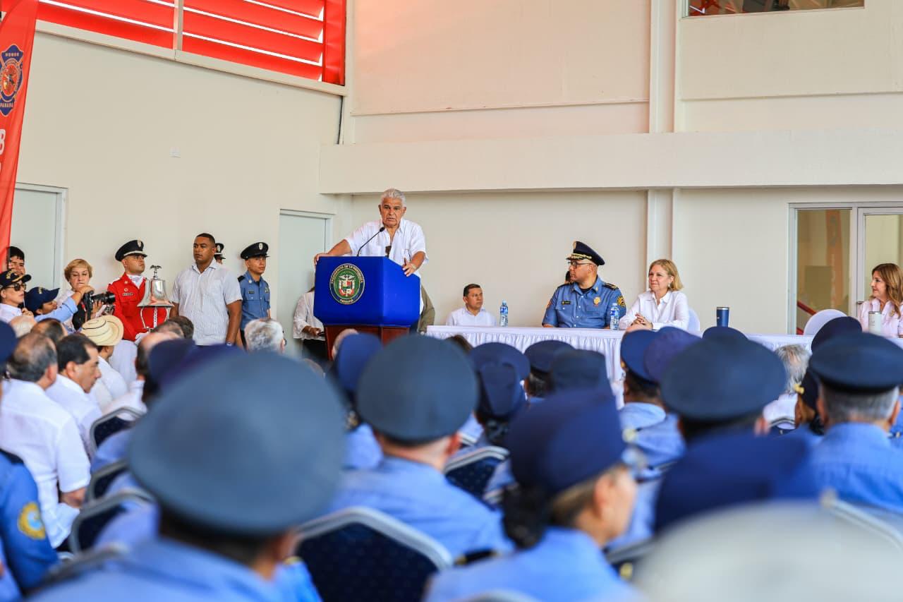 El acto tuvo lugar en medio del corte de cinta de la remodelada Estación de Bomberos Mayor Bredio R. Borrero S., en Guararé, provincia de Los Santos.
