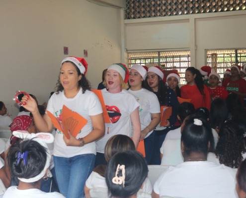 La parte artística de la actividad la llevaron las reclusas del programa de resocialización Mi Voz para tus Ojos con un sociodrama y villancicos.
