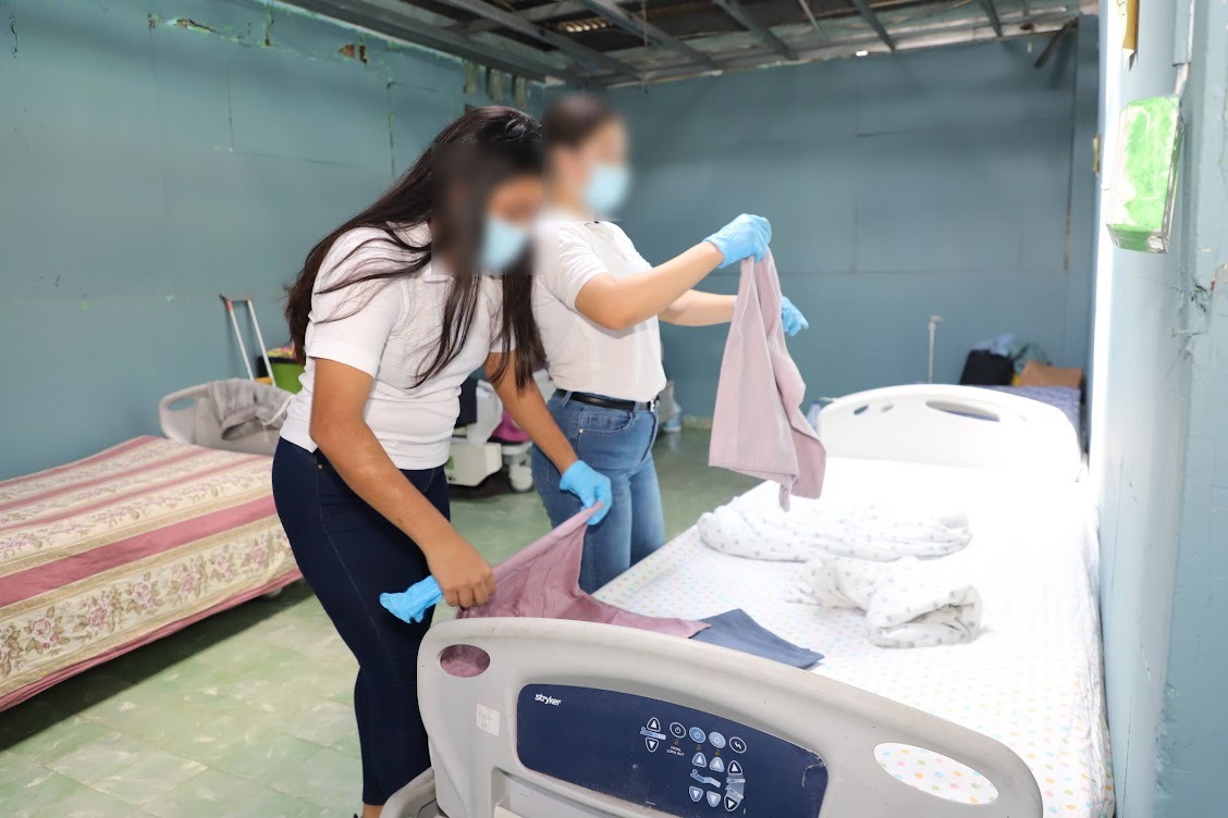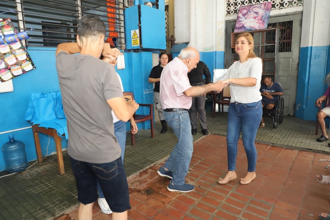 El hogar para adultos mayores que actualmente mantiene una población de 36 varones rescatados de las calles por abandono, maltrato, enfermedades, problemas de adicciones o riesgo social, se llenó de música, bailes congos, cortes de cabello, barbas, uñas, aseo personal y demás trabajo social realizados por las jóvenes privadas de libertad en beneficio de los denominados «más pobres entre los pobres”.