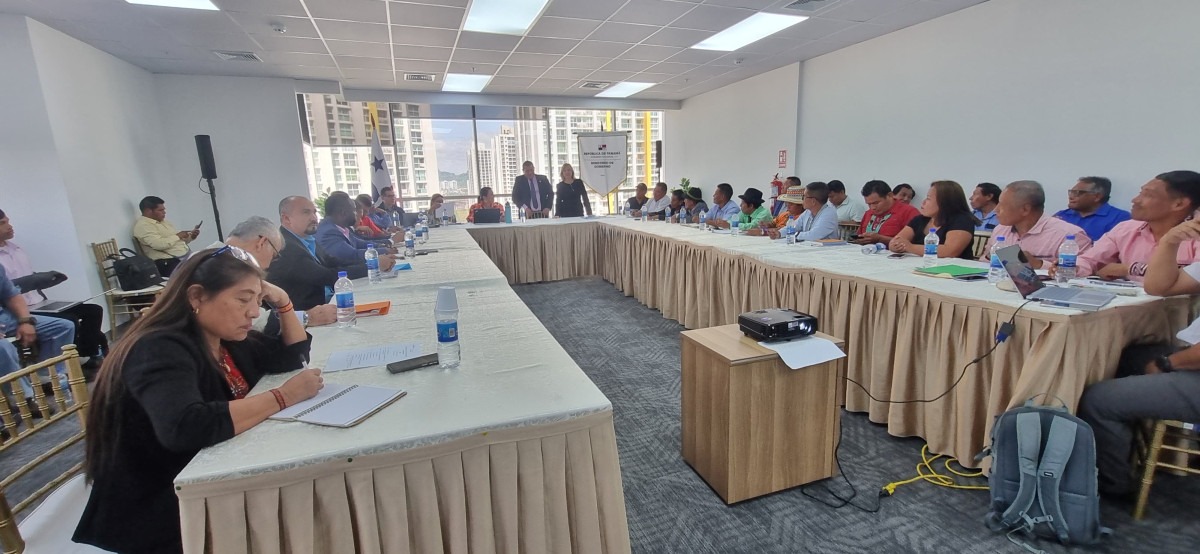 Panamá, 14 de enero de 2025.- Autoridades tradicionales se reúnen en el Ministerio de Gobierno con funcionarios de la ANATI, Tribunal Electoral, la Comisión de Límites, Contraloría y el Viceministro de Asuntos Indígenas, Julián Águila, entre otras autoridades, para analizar y actualizar los temas prioritarios de los territorios originarios.