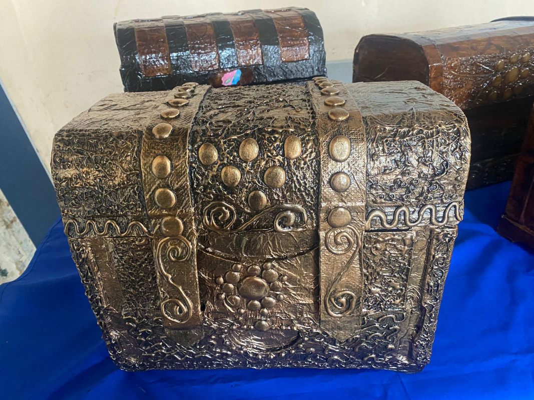 La instructora María Villegas recalcó que todo se trata de creatividad, usando material reciclado de acuerdo al tamaño que se quiere confeccionar el baúl, el cual se refuerza con papel, goma, dándole resistencia, luego se le coloca pintura metalizada, acrílica, barniz, dándoles un acabado atractivo y por último se instalan los accesorios como tiradores y patitas de hierro.