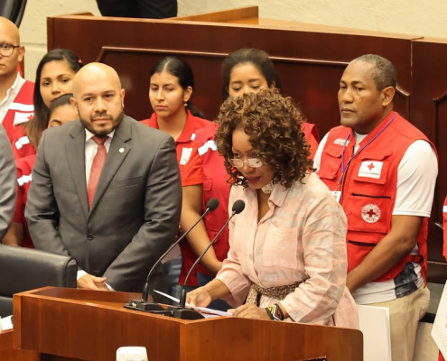 La viceministra de Gobierno, Juana López, en representación del titular de la cartera, Roger Tejada Bryden, resaltó la extraordinaria labor que realiza la Cruz Roja Panameña, una de las instituciones más loables del país; a su vez, agradeció a los diputados por el respaldo al proyecto para garantizar que la Cruz Roja Panameña, cuente con la normativa necesaria, digna de la labor que realizan.