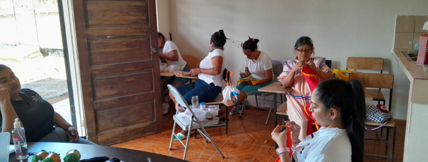 Chiriquí, 5 de marzo de 2025. – Las mujeres privadas de libertad que participan como artesanas en el taller del proyecto en el Centro de Rehabilitación Femenino Los Algarrobos se encuentran ocupadas preparando productos para la venta en el stand de Integrarte en la 68ª edición de la Feria Internacional de David.
