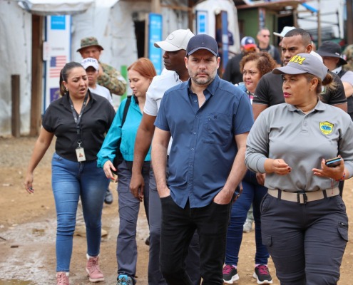 El recorrido también abarcó las instalaciones de la Oficina Nacional para la Atención de Refugiados (ONPAR) ubicadas en Metetí. En este sentido, el director de la ONPAR, Gerald Cumberbatch, precisó que esta oficina es determinante para que las personas que ingresan por Darién puedan solicitar protección internacional. «Es aquí donde se les da esa primera atención y se les brinda el apoyo que requieren», destacó el funcionario.