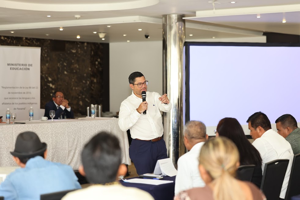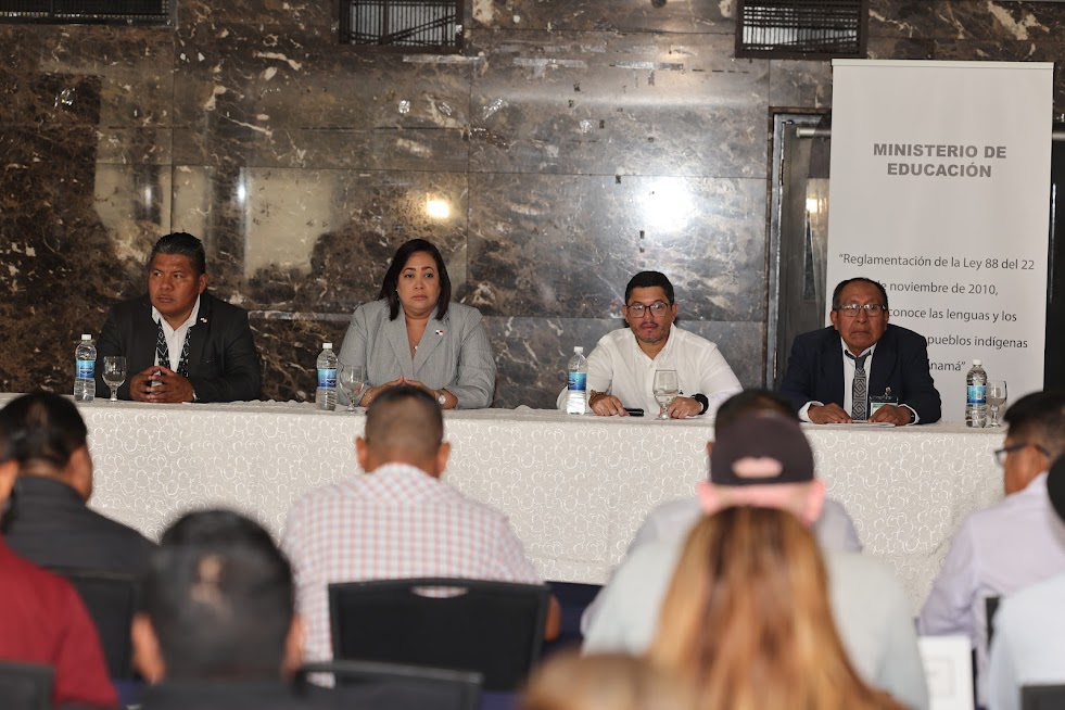 Panamá, 09 de abril de 2024. Con el objetivo de ofrecer oportunidades educativas a los estudiantes indígenas para reducir las brechas de inequidad existentes, proteger y consolidar los idiomas originarios, el Ministerio de Educación junto al Viceministerio de Asuntos Indígenas del Ministerio de Gobierno, presentó a las autoridades indígenas la reglamentación de la Ley 88 del 22 de noviembre de 2010, que reconoce las lenguas y los alfabetos de los pueblos indígenas de Panamá y dicta normas de la Educación Intercultural de Bilingüe.