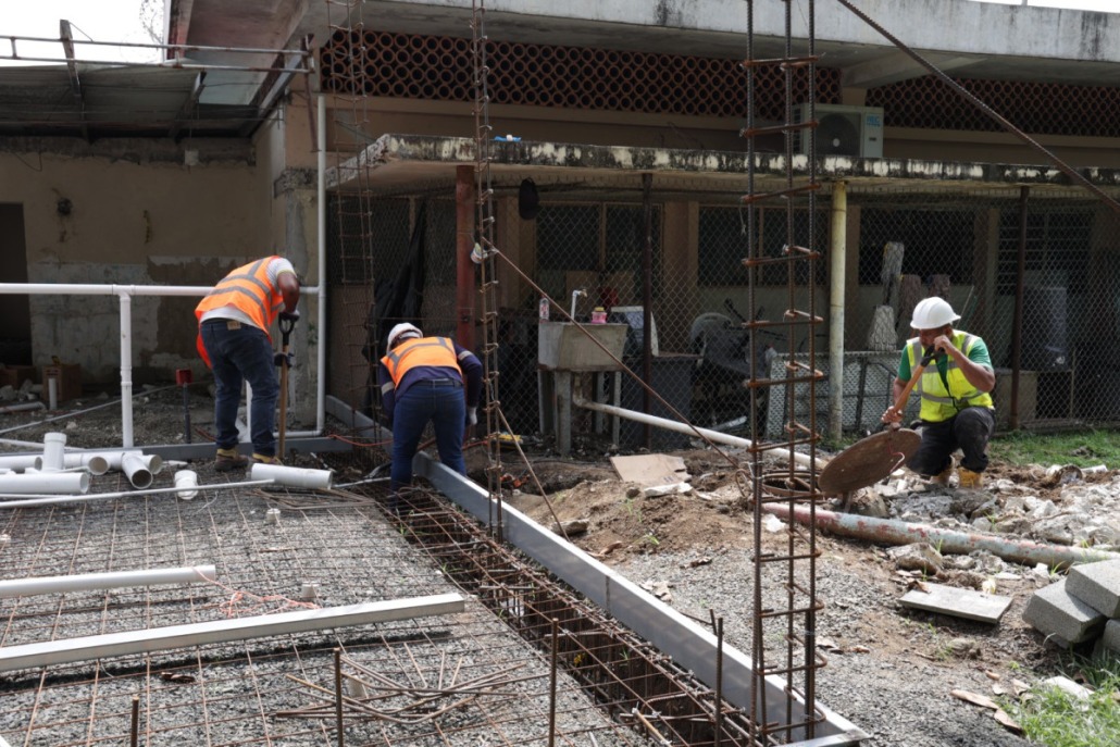 Entre los avances destaca la demolición de estructuras, nivelación de piso, plomería, tuberías de luz eléctrica, dejando todo preparado para el vaciado de concreto la próxima semana, etapa que dará inicio al bloqueo de paredes; trabajos que se realizan con mano de obra de privados de libertad del centro de rehabilitación El Renacer, bajo la supervisión de la Oficina de Infraestructura y Mantenimiento (OIM) del Ministerio de Gobierno (Mingob).