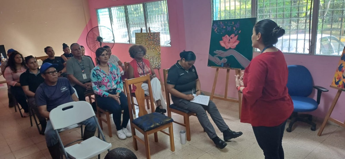Panamá, 11 de enero de 2024. – Optimizar la labor resocializadora en beneficio de las jóvenes en conflicto con la Ley Penal fue el objetivo del taller “Promoción de Salud Mental”, dirigido al recurso humano del Centro de Custodia y Cumplimiento Residencia Femenina (CCCRF) del Instituto de Estudios Interdisciplinarios (IEI) del Ministerio de Gobierno (MINGOB) con el apoyo de la Fundación Rachat-Ger.