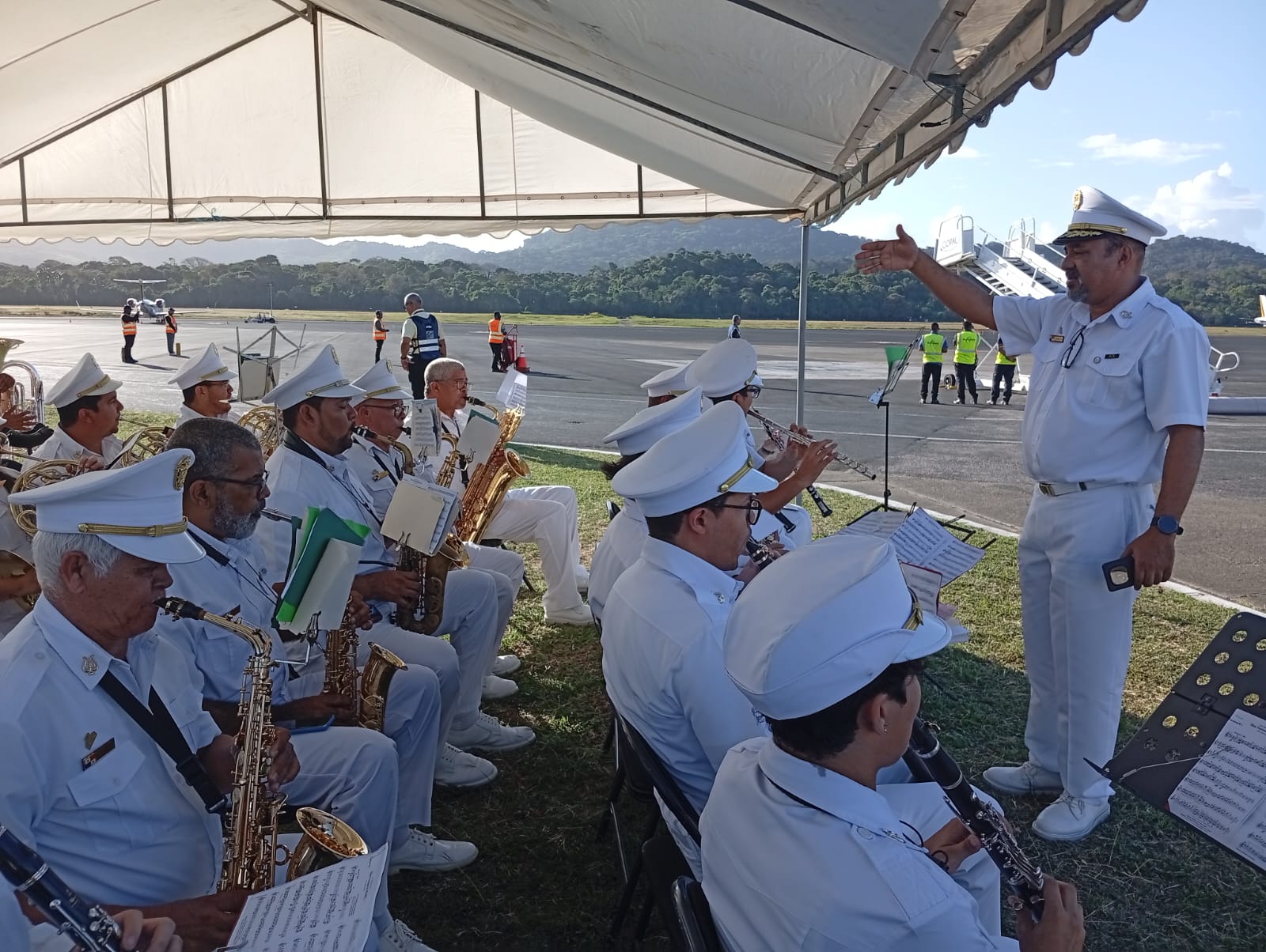 La Banda Republicana, adscrita al Ministerio de Gobierno, interpretó el Himno Nacional y otras piezas protocolares durante la llegada al país del presidente de Brasil, Luiz Inácio Lula da Silva.