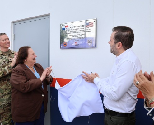Durante la entrega de esta bodega por parte de la Embajadora de los Estados Unidos en Panamá, Mari Carmen Aponte, se realizó la develación de una placa como simbolismo de la fraternidad y los lazos de cooperación, para socorrer a los necesitados.