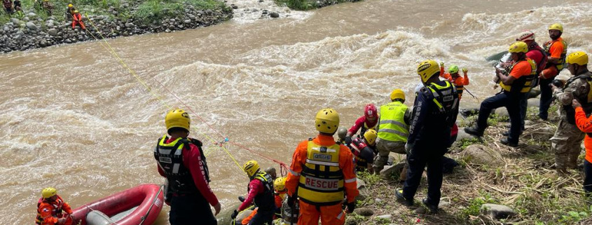 En el río Chiriquí Viejo en Paso Canoas, seis personas atrapadas en el cauce fueron rescatadas en un ejercicio en el que intervinieron 41 rescatistas y una ambulancia de la Caja de Seguro Social con paramédicos para atender la emergencia.