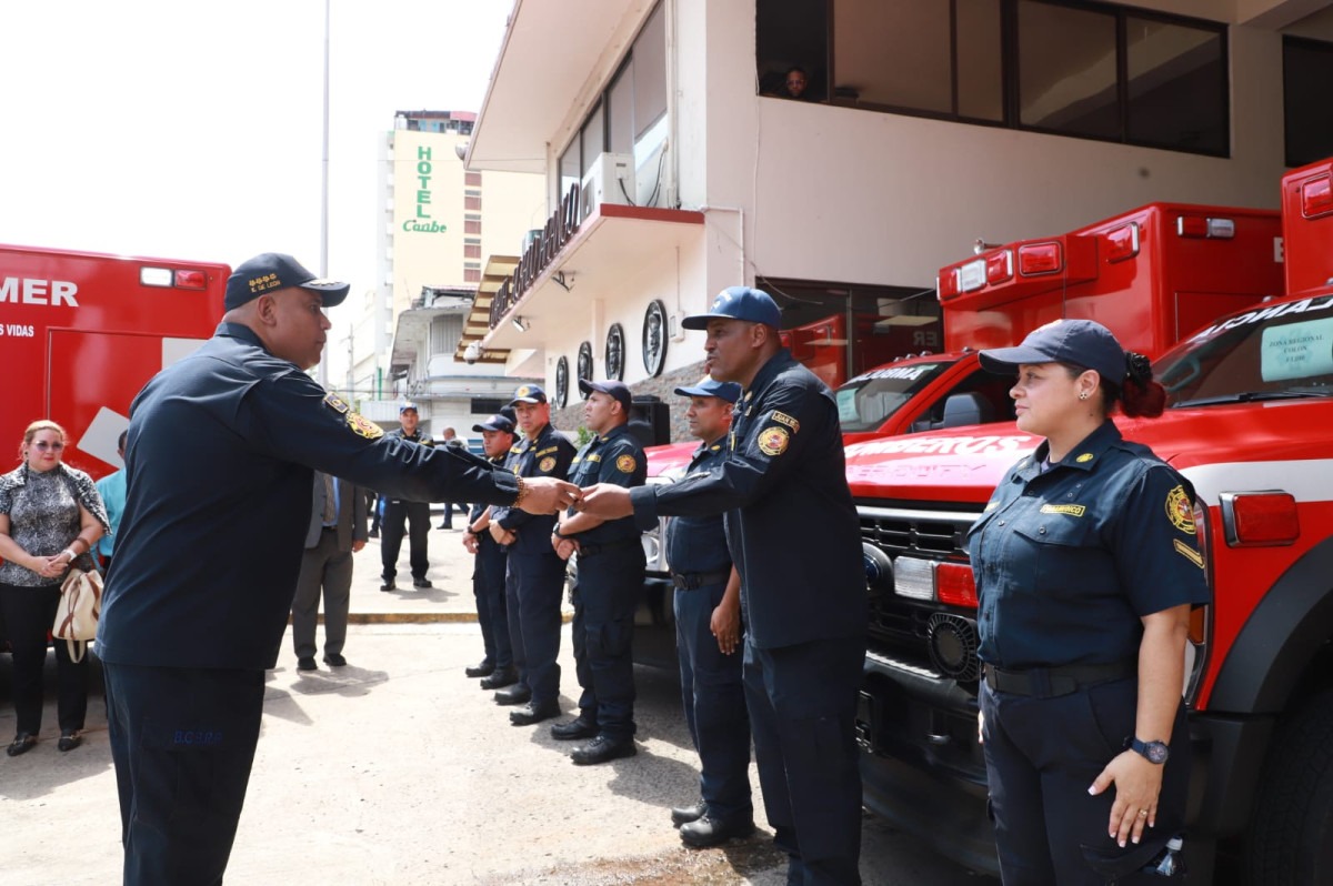 Panamá, 2 de mayo de 2024. El ministro de Gobierno, Roger Tejada, entregó seis ambulancias de última generación, totalmente equipadas a los jefes de las zonas regionales del Benemérito Cuerpo de Bomberos de la República de Panamá (BCBRP). En una ceremonia que contó con la presencia del coronel Ernesto De León Echevers, director encargado del BCBRP, oficiales de la institución, miembros del patronato y personal de los bomberos.