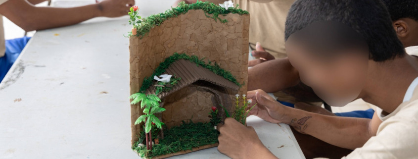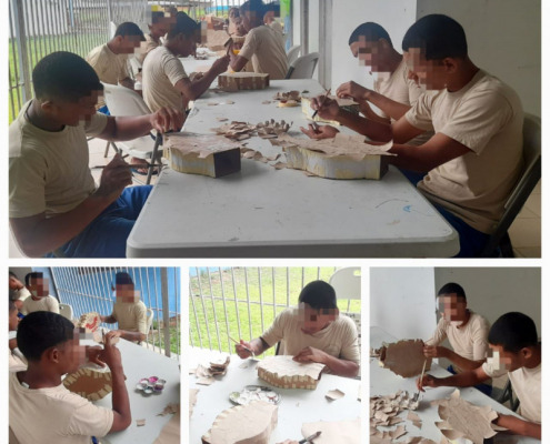Panamá, 4 de junio de 2023. – Promover la salud física, mental, emocional, el emprendimiento y la conciencia ecológica de los adolescentes en conflicto con la Ley Penal, mediante el desarrollo de habilidades blandas, es el objetivo del taller de Artesanías Manuales, iniciado en el Centro de Cumplimiento de Las Garzas (CCLG) con el apoyo del Instituto Nacional de Formación Profesional y Capacitación para el Desarrollo Humano (INADEH).