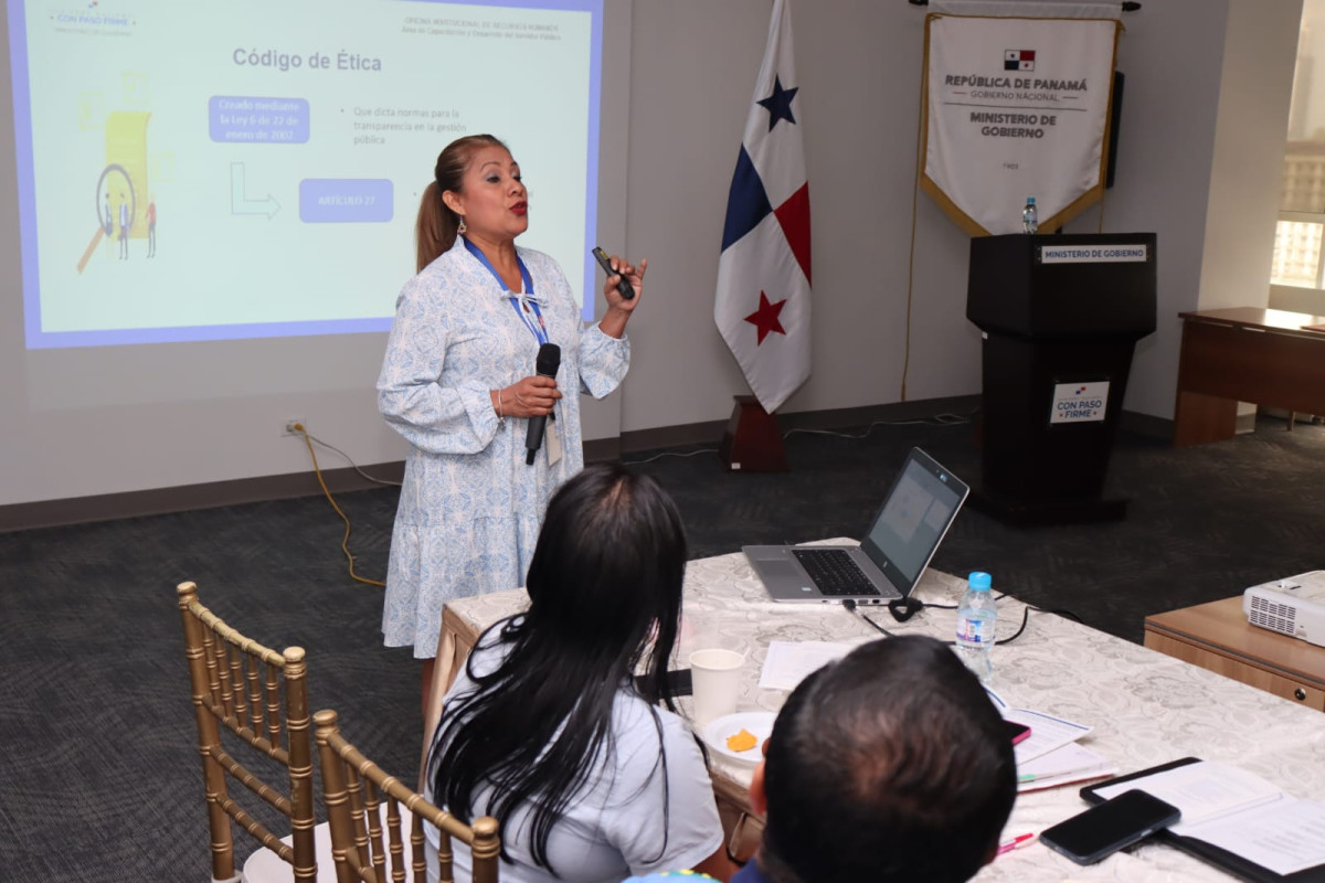 Esta capacitación que fue facilitada por la Oficina Institucional de Recursos Humanos a través del área de Capacitación y Desarrollo del Servidor Público del Ministerio de Gobierno, se trataron diversos temas como: la Orientación Legal de Procedimientos antes los Gobernadores, Principios Generales de Ética y Transparencia; además del Uso Correcto de Trámites Regulares Estructurados, el Sistema de Transparencia y Responsabilidad en el uso de Equipos, Materiales y Rendición de Cuentas.
