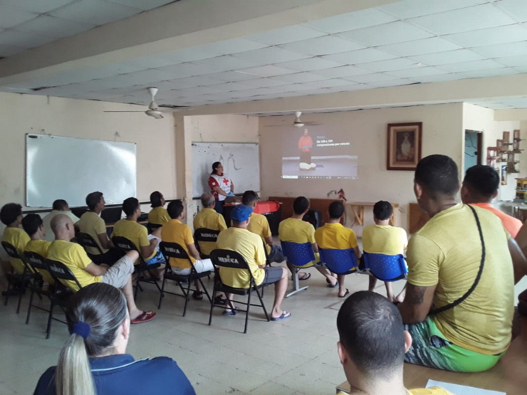 Los Santos, 5 de septiembre de 2023. – Con la participación de 42 personas entre privados de libertad, custodios y administrativos, se realizó un intensivo taller sobre “Primeros Auxilios” en el centro penitenciario de Las Tablas, a cargo de especialistas de la Cruz Roja, como parte del reforzamiento de los programas de resocialización que desarrolla la Dirección General del Sistema Penitenciario (DGSP).
