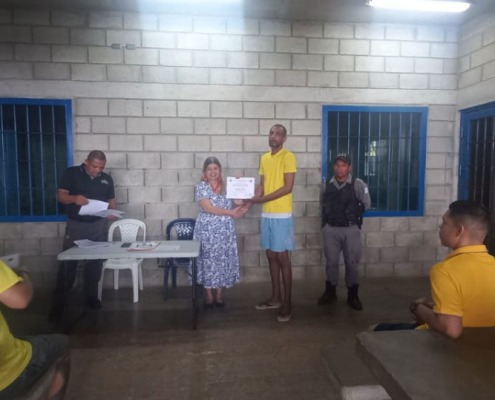 Panamá, 22 de mayo de 2024. – Un total de 25 privados de libertad del centro penitenciario La Nueva Joya recibió certificado de participación del curso básico de Primeros Auxilios, capacitación impartida por el Benemérito Cuerpo de Bomberos de la República de Panamá.