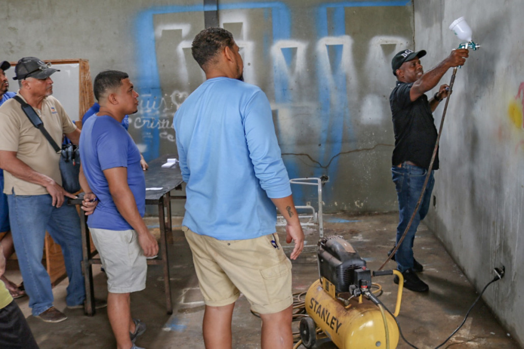 Alma De León, jefa del departamento de Planificación y Proyectos del Sistema Penitenciario, indicó que el capacitador les explicó a los reclusos las técnicas para un mejor acabado, adicional aprenden a realizar técnicas en mezclas de pinturas, considerando el rendimiento de los insumos y propiedades de los tipos de pinturas.