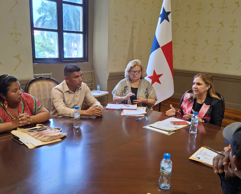 Panamá, 22 de mayo de 2025.- Representantes de las comunidades de Plan de Chorcha y Caboy de la Comarca Ngäbe Buglé sostuvieron una reunión con la ministra de Gobierno, Dinoska Montalvo, en la cual expusieron diversas problemáticas que…