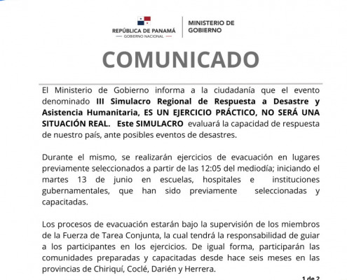 COMUNICADO III Simulacro Regional de Respuesta a Desastre y Asistencia Humanitaria