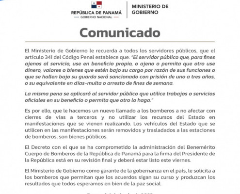 Panamá, 1 de junio de 2023. El Ministerio de Gobierno le recuerda a todos los servidores públicos, que el artículo 341 del Código Penal establece que: “El servidor público que, para fines ajenos al servicio, use en beneficio propio, o…