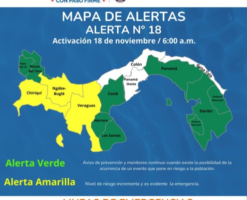 El Sistema Nacional de Protección Civil (Sinaproc) comunica que ante los avisos de vigilancia del IMHPA y las mejora en las condiciones del tiempo se baja la alerta roja en las provincias de Chiriquí, Veraguas y la comarca Ngobe Buglé. Dichas…
