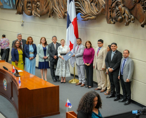 Panamá, 20 de marzo de 2025.- La ministra de Gobierno, Dinoska Montalvo, debidamente autorizada por el Consejo de Gabinete, presentó este jueves, ante el pleno de la Asamblea Nacional el proyecto de Ley 125 “Que subroga la Ley 230 de 24…