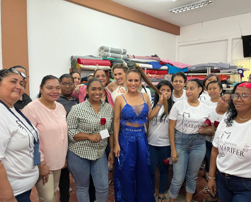Panamá, 18 de febrero de 2025. - Al son de la “Gallina Fina”, la cantante típica Sandra Sandoval se atavió con un hermoso vestido azul, confeccionado a mano por la privada de libertad Otilda Espinosa, quien labora en el taller de costura…