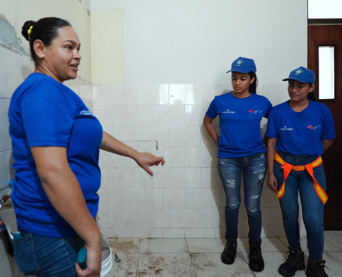 Las chicas privadas de libertad, se dividieron en grupo y completaron una jornada de limpieza, recogiendo basura a lo interno y externo, baldearon el piso, desmontaron los muebles de cocina, barrieron, trapearon y arreglaron algunas tuberías que estaban deterioradas.