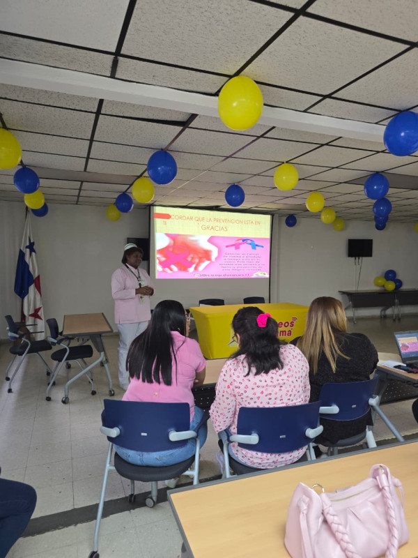 En conmemoración del Mes de la Cinta Celeste y Rosada, el pasado 17 de octubre recibimos la visita de personal de la Asociación de Enfermeras de Panamá, quienes dictaron una charla sobre la prevención del cáncer de mama y próstata.