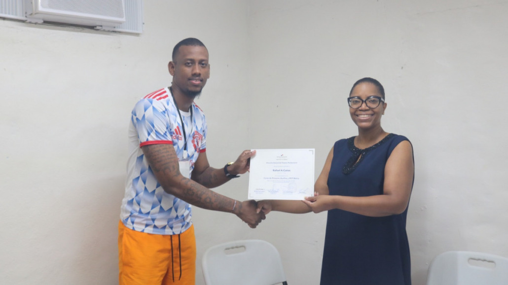 Esta actividad es coordinada por la Dirección General del Sistema Penitenciario (DGSP) a través del departamento de Tratamiento y Rehabilitación en todos los centros del país y entre los temas que se abordan en este curso se encuentran: bioseguridad, botiquín, primeros auxilios básicos, evaluación de la víctima consiente e inconsciente, reanimación cardiopulmonar, uso del desfibrilador externo, obstrucción de la vía aérea, enfermedades cerebrovascular, manejo de heridas, control de hemorragias, lesiones y quemaduras.