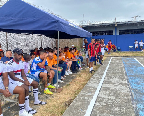 Panamá, 21 de marzo de 2023 – El equipo de la sección de la Iglesia del centro de detención de Tinajitas se coronó campeón de la liga de fútbol donde participaron seis equipos de las distintas secciones y contó para esta clausura con la presencia de los familiares de los privados de libertad, quienes le dieron ese toque de emoción con sus respectivas barras a este evento deportivo que forma parte de los programas de resocialización que desarrolla la Dirección General del Sistema Penitenciario.