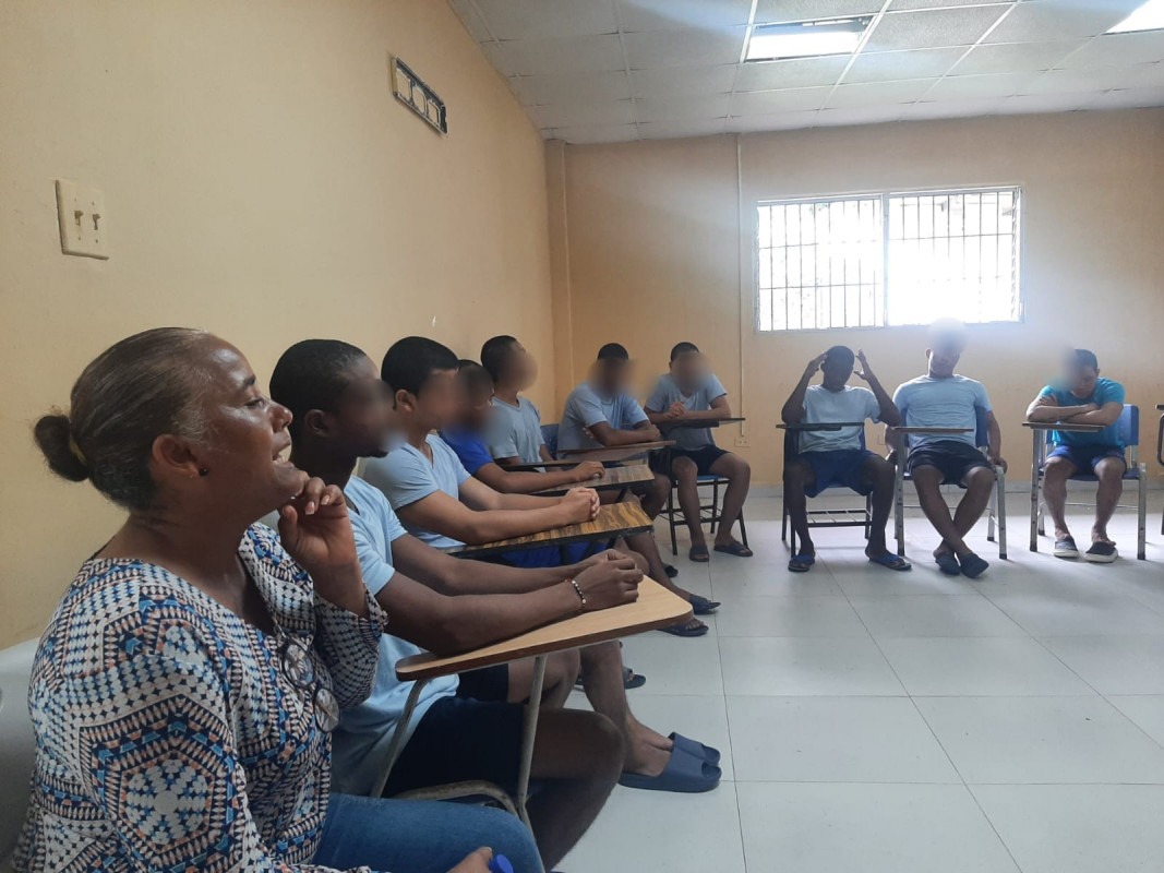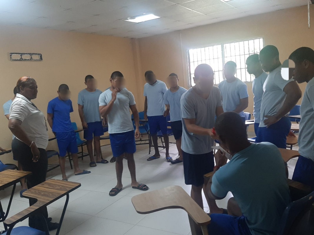 Colón, 15 de enero de 2024. – Con reflexiones del Capítulo 5 Versículos del 16 al 22 de la carta a los Gálatas, 15 jóvenes del Centro de Custodia y Cumplimiento Basilio Lakas (CCCBL) de la provincia de Colón, participaron del Circulo de Lecturas Bíblicas enmarcado en el Eje de Compañía Espiritual del Modelo de Intervención Integral pilar del Instituto de Estudios Interdisciplinarios (IEI) para la resocialización.
