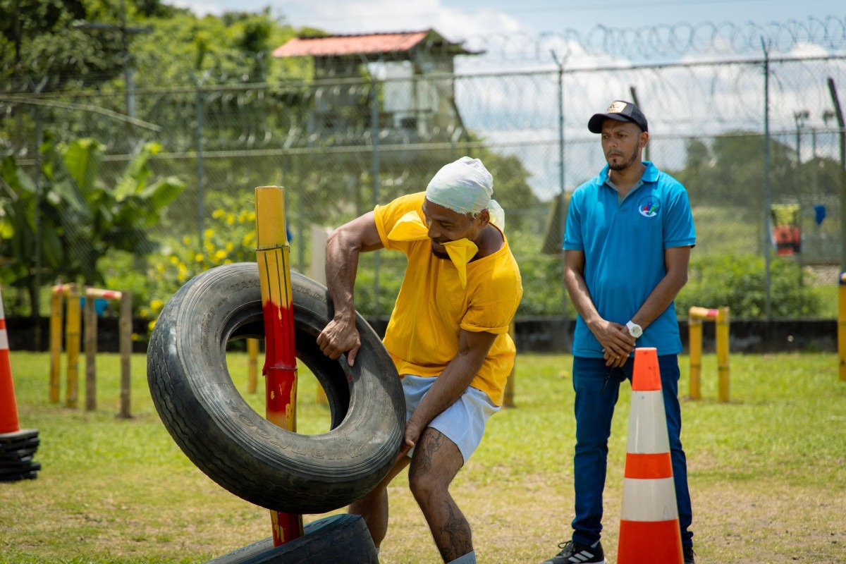 Los equipos amarillo y rojo se enfrentaron en diversas pruebas físicas, que incluyeron carreras y levantamiento de llantas; ejercicios de estilo crossfit, y más, empujando a los privados de libertad a dar lo mejor de sí.