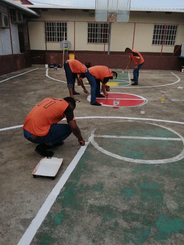 Panamá, 6 de marzo de 2023. – Aportando su granito de arena para el buen inicio del año escolar, un grupo de 10 adolescentes del Centro de Cumplimiento de Las Garzas (CCLG) realizó labores extramuros en la escuela Bilingüe Teresa de Jesús, ubicada en el corregimiento de Pacora, como parte de los programas de resocialización establecidos por el Ministerio de Gobierno (MINGOB) mediante el Instituto de Estudios Interdisciplinarios (IEI).