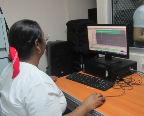 Laura Chanis, privada de libertad expresa la satisfacción de aprender muchas cosas interesantes que no conocía, como los fundamentos básicos de la grabación, tipos y uso de micrófonos, adicional a técnicas de manejo de la voz.