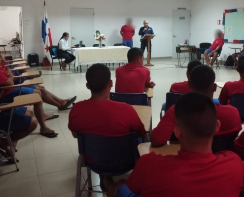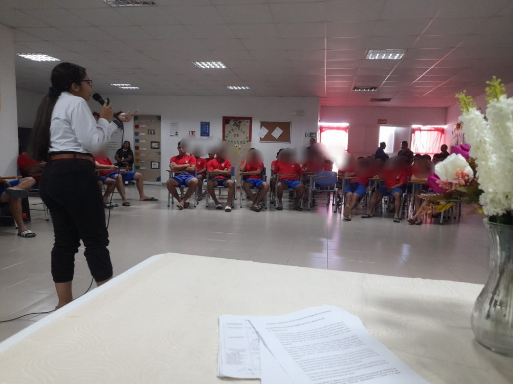 Herrera, 21 de febrero de 2024. -“Peligros y riesgos de las actividades del verano de los panameños” fue el tema de la charla organizada por alianza interinstitucional entre el Instituto de Estudios Interdisciplinarios (IEI), el Ministerio de Salud (MINSA) y la Policía Nacional (PN) para beneficio de 37 adolescentes en conflicto con la Ley Penal del Centro de Custodia y Cumplimiento de Herrera (CCCH).