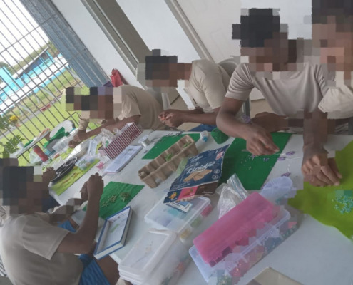 Panamá, 11 de enero de 2024.- Un grupo de 15 adolescentes del Centro de Cumplimiento de Las Garzas (CCLG) inició el Taller de Elaboración de Tembleques, implementado por el Instituto de Estudios Interdisciplinarios (IEI), en alianza con el Instituto Nacional de Formación Profesional y Capacitación para el Desarrollo Humano (INADEH) garantizando la capacitación laboral de los jóvenes en conflicto con la Ley Penal.