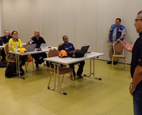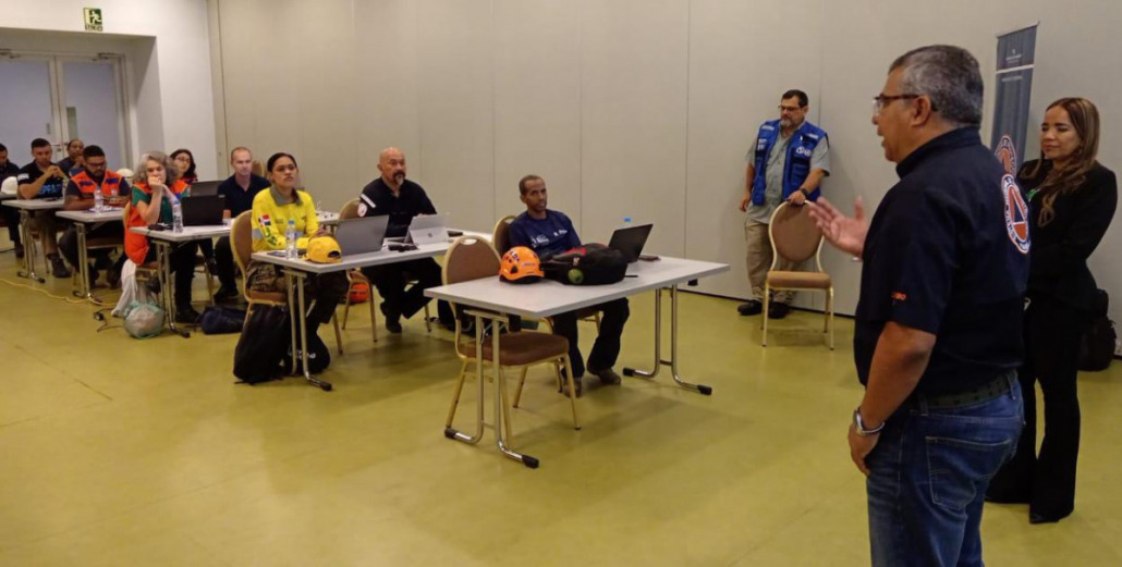 Esta inducción es impartida por especialistas en escenarios USAR (Búsqueda y Rescate Urbano en Estructuras Colapsadas) de la Oficina para la Coordinación de Asuntos Humanitarios de Naciones Unidas (OCHA), quienes explican a los participantes cada uno de los escenarios que se pondrán a prueba para medir las capacidades técnicas y la coordinación del trabajo de los equipos USAR en este ejercicio internacional.