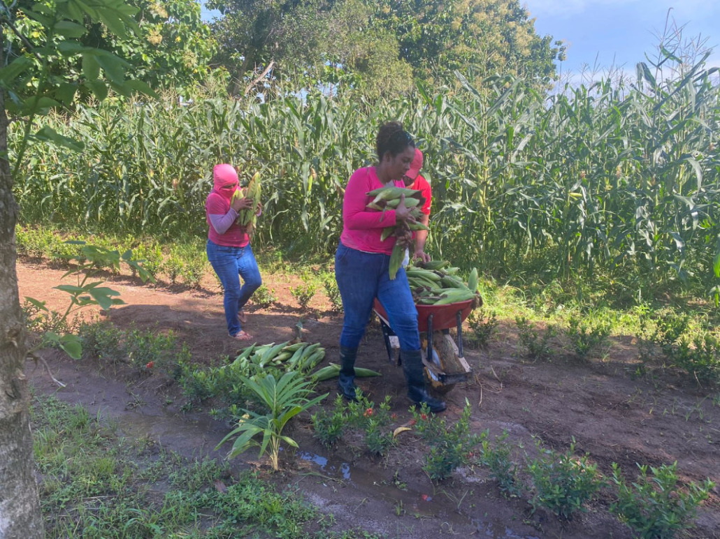 Coclé, 12 de julio de 2024. – Bajo el radiante sol, privados y privadas de libertad que participan en la Casa Granja del centro penitenciario de Llano Marín, cosecharon 3 mil 100 mazorcas de maíz, actividad que forma parte de los programas de resocialización que desarrolla la Dirección General del Sistema Penitenciario (DGSP), dependencia del Ministerio de Gobierno (Mingob).
