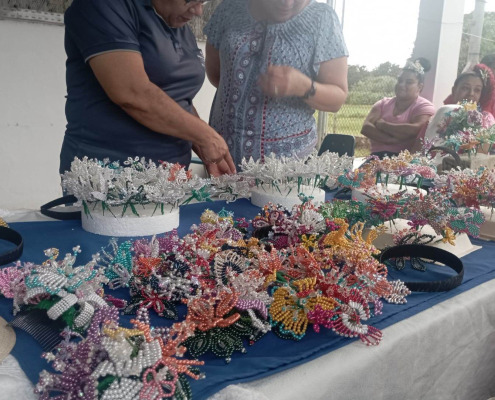 En la actividad las mujeres en privación de libertad diseñan y experimentan con diversos tipos y modelos de tembleques, preservando la singularidad de esta prenda tradicional que representa su herencia nacional.