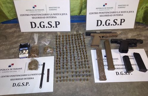 Panamá, 25 de mayo de 2023. – Dos armas de fuego con sus proveedores, otros dos proveedores y 170 municiones de arma de fuego, tres bolsitas con hierba seca que se presume sea sustancia ilícita, una cajeta de cigarrillo y dos pedazos de seguetas, fueron decomisados en una rápida reacción operativa por parte de custodios en el sector B de La Nueva Joya.