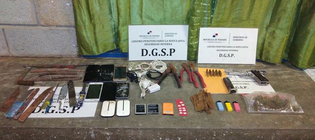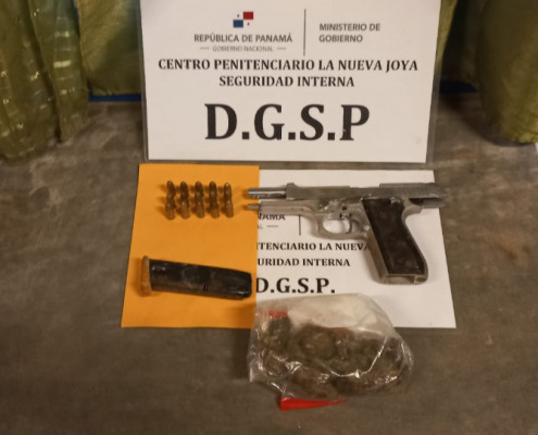 Panamá, 23 de junio de 2023. – Siete lanzamientos con aeronaves no tripuladas conocidas como «dron» fueron frustrados por custodios penitenciarios en los sectores A, B y D de La Nueva Joya, paquetes que contenían sustancias ilícitas y artículos prohibidos. En este mismo centro se realizó una requisa en el sector D, decomisando una pistola 9 milímetros, con un proveedor que mantenía 15 municiones, seis celulares, dos «router», armas punzocortantes, entre otros artículos ilegales.