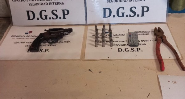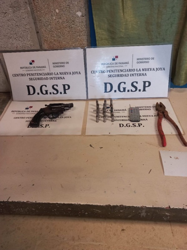 Panamá, 27 de noviembre de 2023. – En una requisa realizada en el sector D de La Nueva Joya, custodios penitenciarios decomisaron un arma de fuego calibre 38 con 15 municiones, adicional un alicate y un «chip» de teléfono celular. Con este caso suman cuatro armas decomisadas en este centro en la última semana.