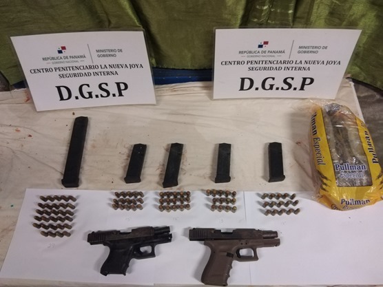 Panamá, 18 de octubre de 2023. – En seguimiento a los férreos operativos de seguridad en los centros penitenciarios, personal custodio de La Nueva Joya decomisó tres armas de fuego en las últimas 72 horas, además de presunta sustancia ilícita, informó Euclides Joel Castillo G., Director General del Sistema Penitenciario.
