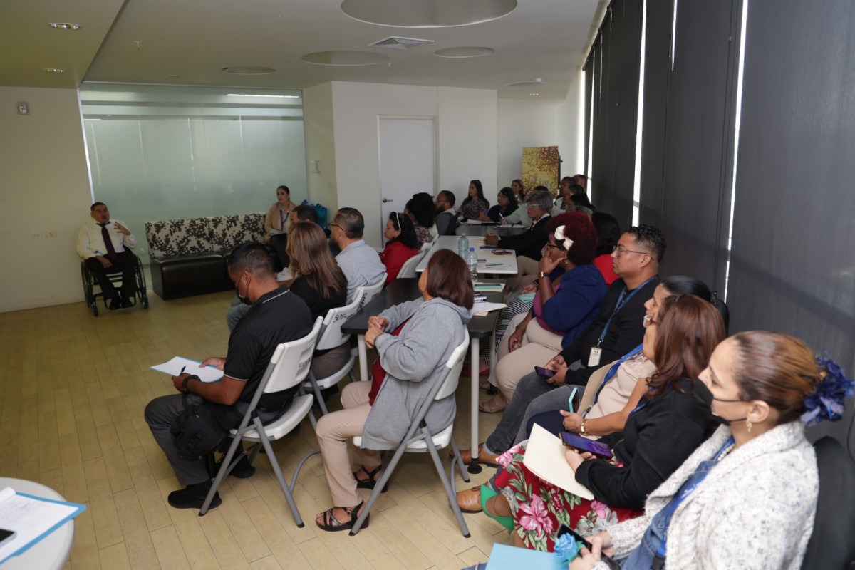 Panamá, 13 de agosto de 2024. Para sensibilizar y orientar a los funcionarios sobre los derechos de las personas con discapacidad, procedimientos, criterios y normativas vigentes, la Oficina de Equiparación de Oportunidades del Ministerio de Gobierno, en conjunto con la Secretaria Nacional de Discapacidad (Senadis) realiza una capacitación dictada por Alexander Rojas, asesor legal de la Senadis.