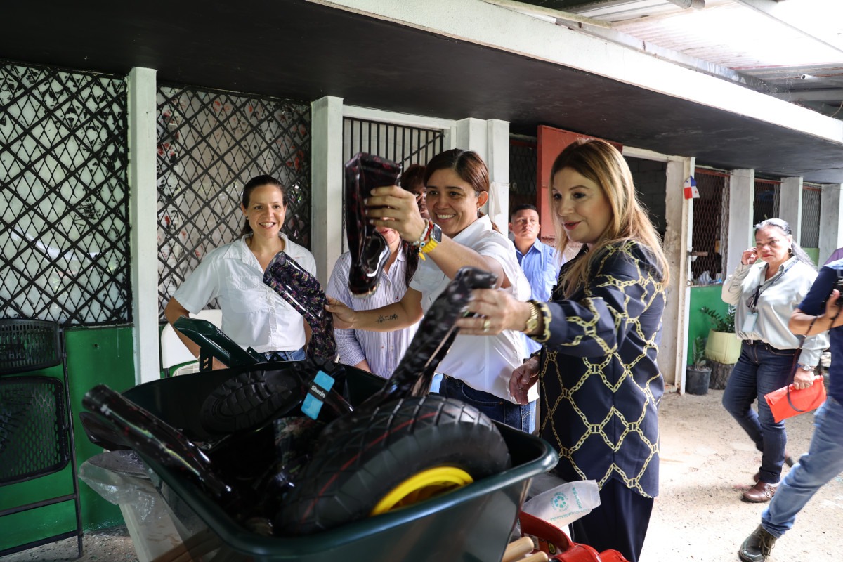Panamá, 28 de agosto de 2024. – Con la entrega de 10 máquinas de coser, herramientas para uso de la granja gestionado por la Dirección Nacional para la Prevención de la Delincuencia Juvenil e implementos de limpieza donados por el súper Xtra, la Primera Dama de la República, Maricel Cohen de Mulino fortalece el taller de costura Integrarte, actividad de huerto y siembra, programas de resocialización importantes en el proceso de reinserción social de las mujeres privadas de libertad del Centro femenino de rehabilitación ‘Cecilia Orillac de Chiari’ (Cefere).